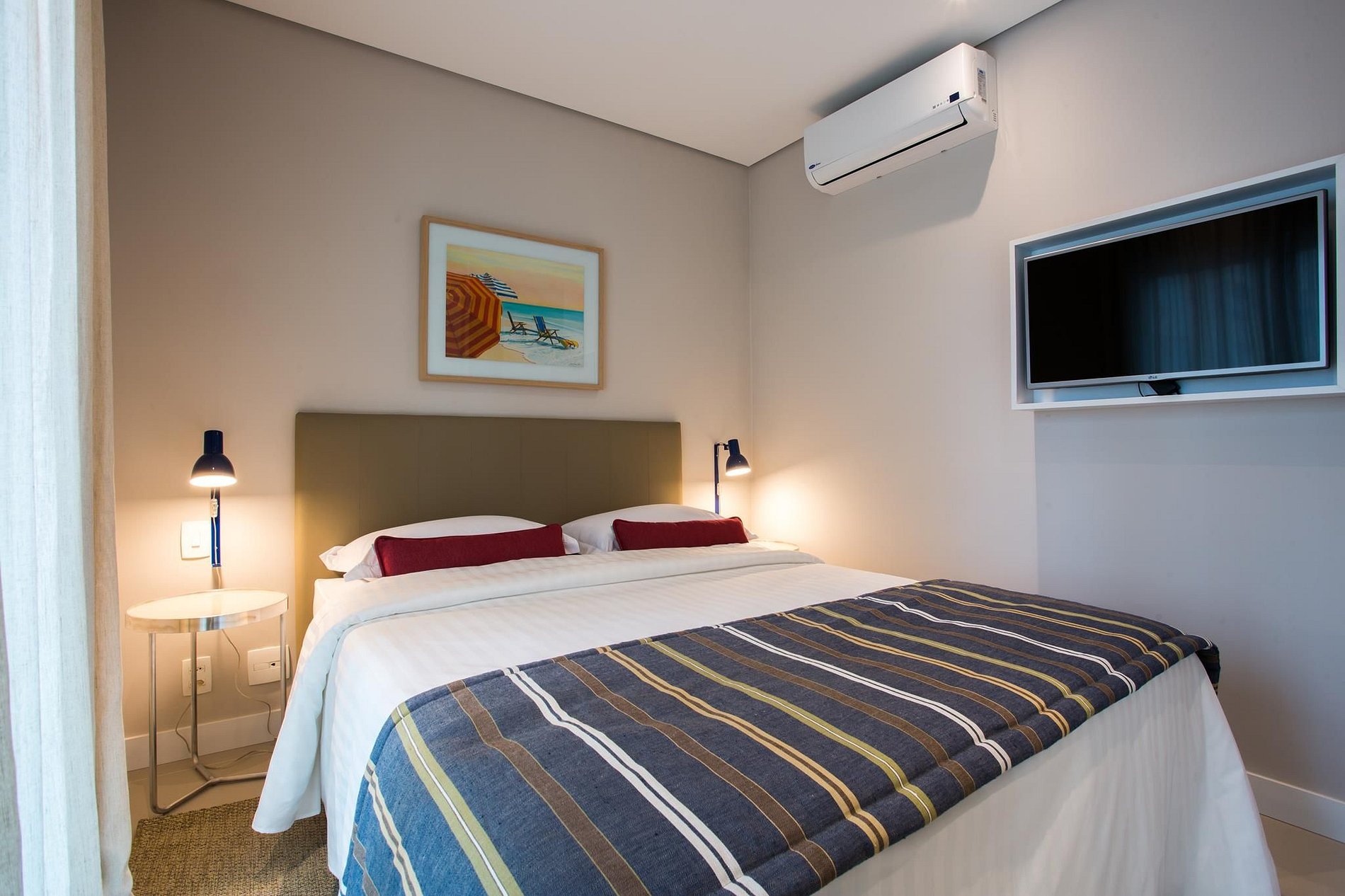 Possui enxoval de cama e banho (exceto toalhas de Praia/Piscina) e acesso a internet wifi gratuito. Apto conta com cozinha equipada com os principais utensílios. Uma varanda para relaxar após o dia de praia ou trabalho. A poucos metros de farmácia, padarias e Supermercado, como o Pão de Açucar, e restaurantes.
