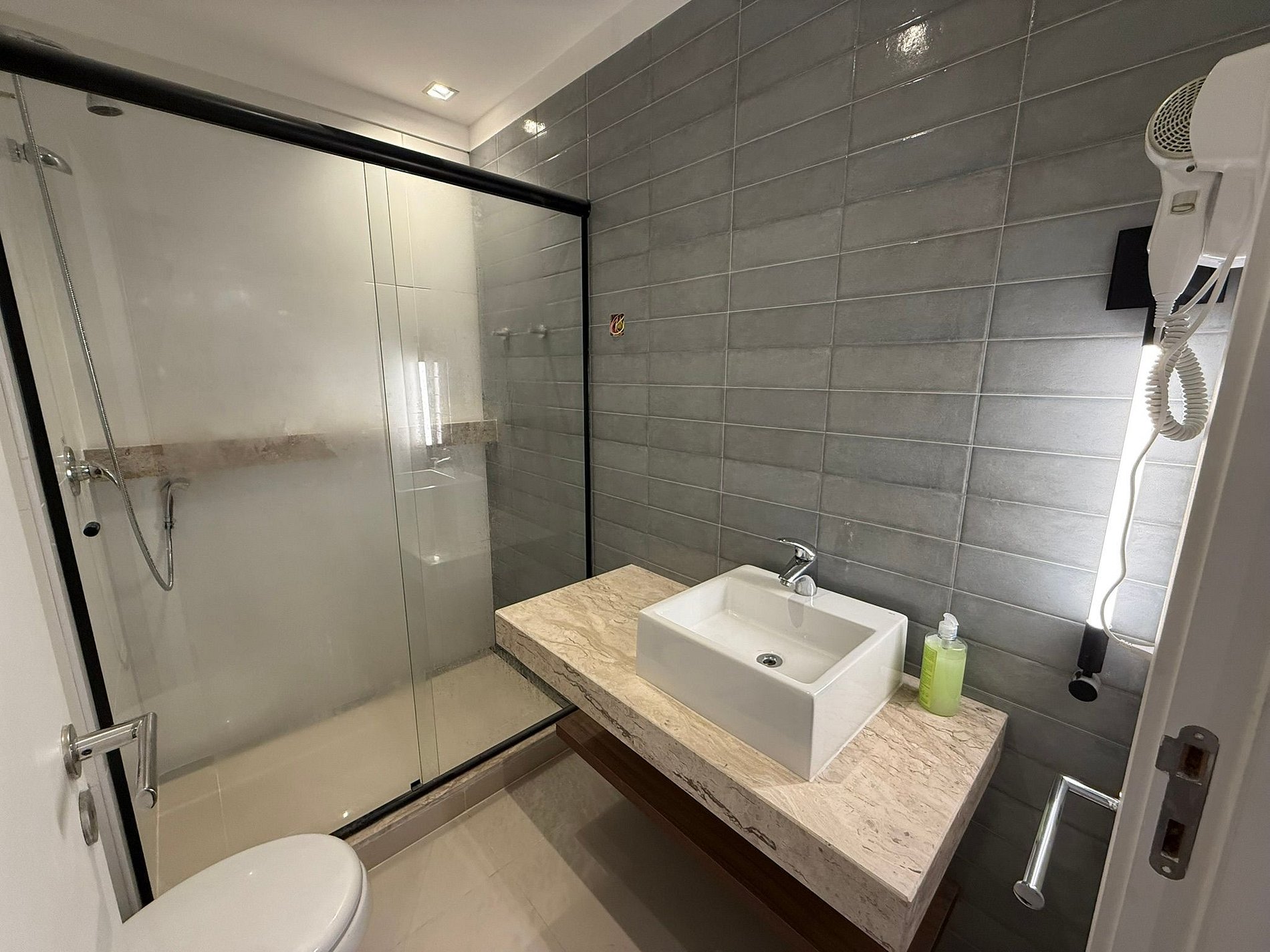 Possui cama casal, Arrumação de quarto todos os dias, recepção 24hr, tudo para que seu bem estar! Contamos com ar condicionado e Internet Wifi,grátis além de uma pequena cozinha que irá resolver suas necessidades e uma pequena Vista Mar entre os prédios