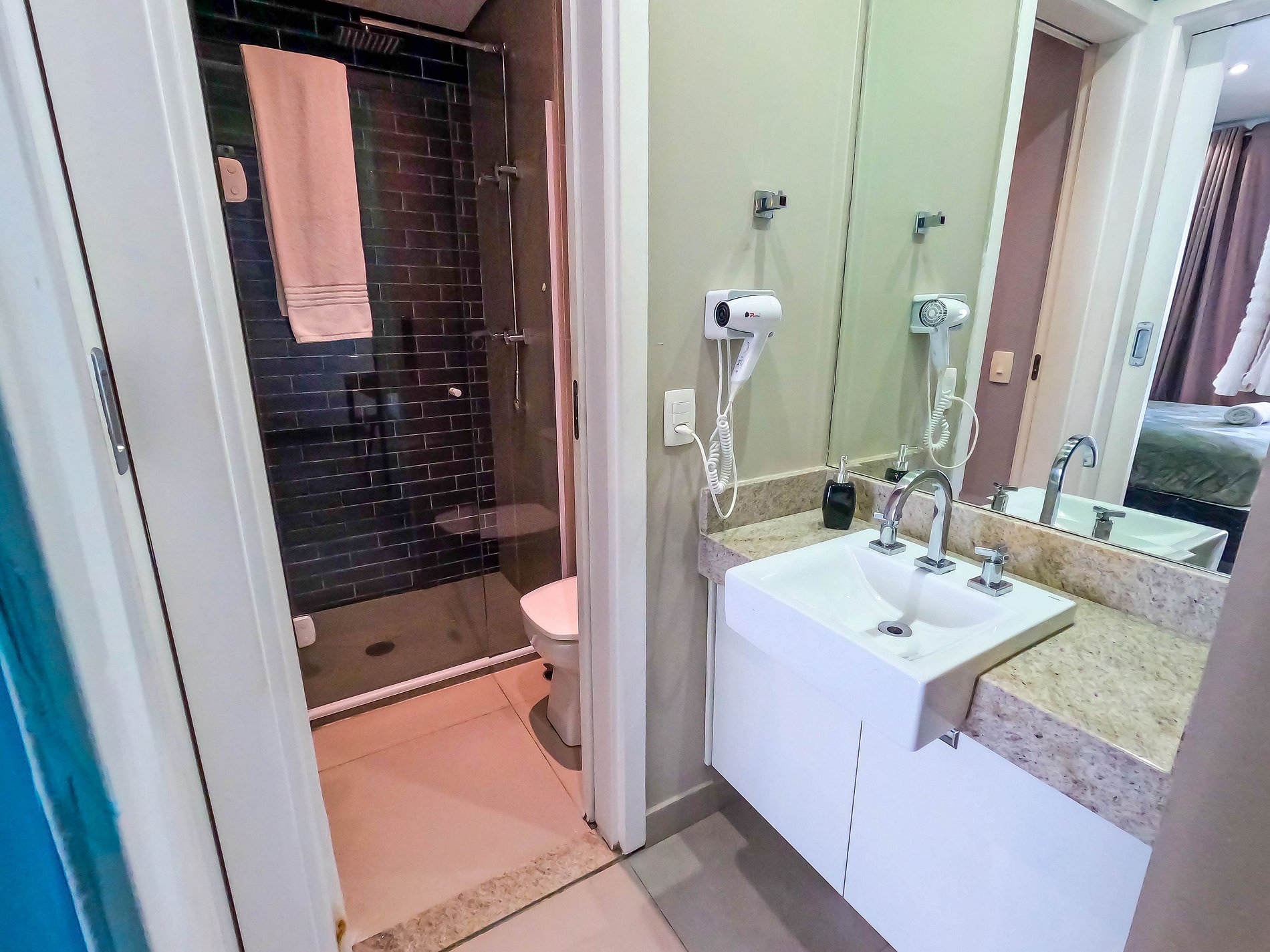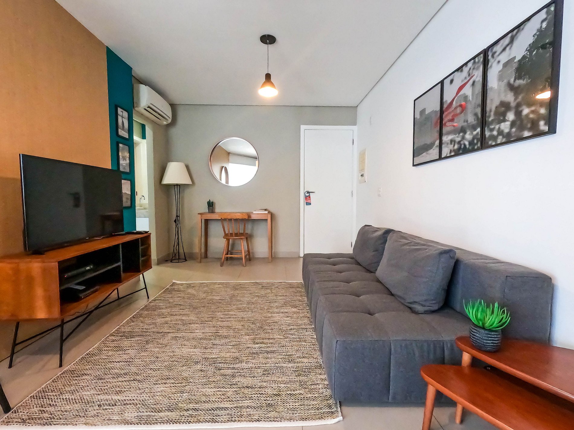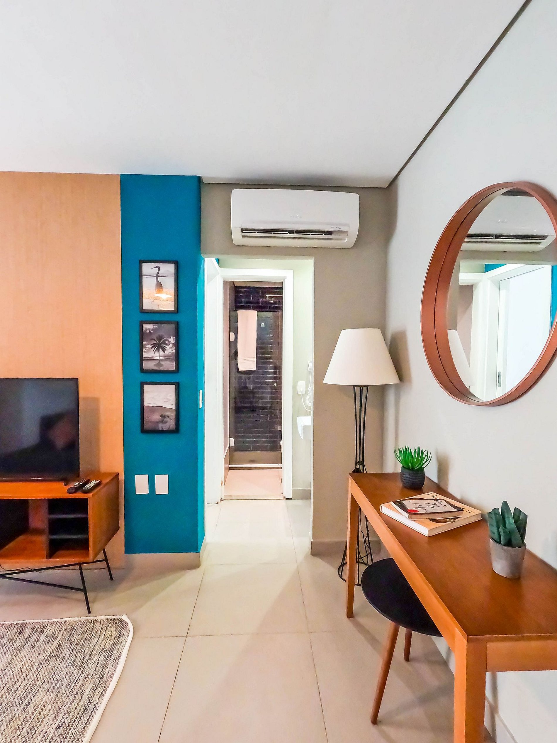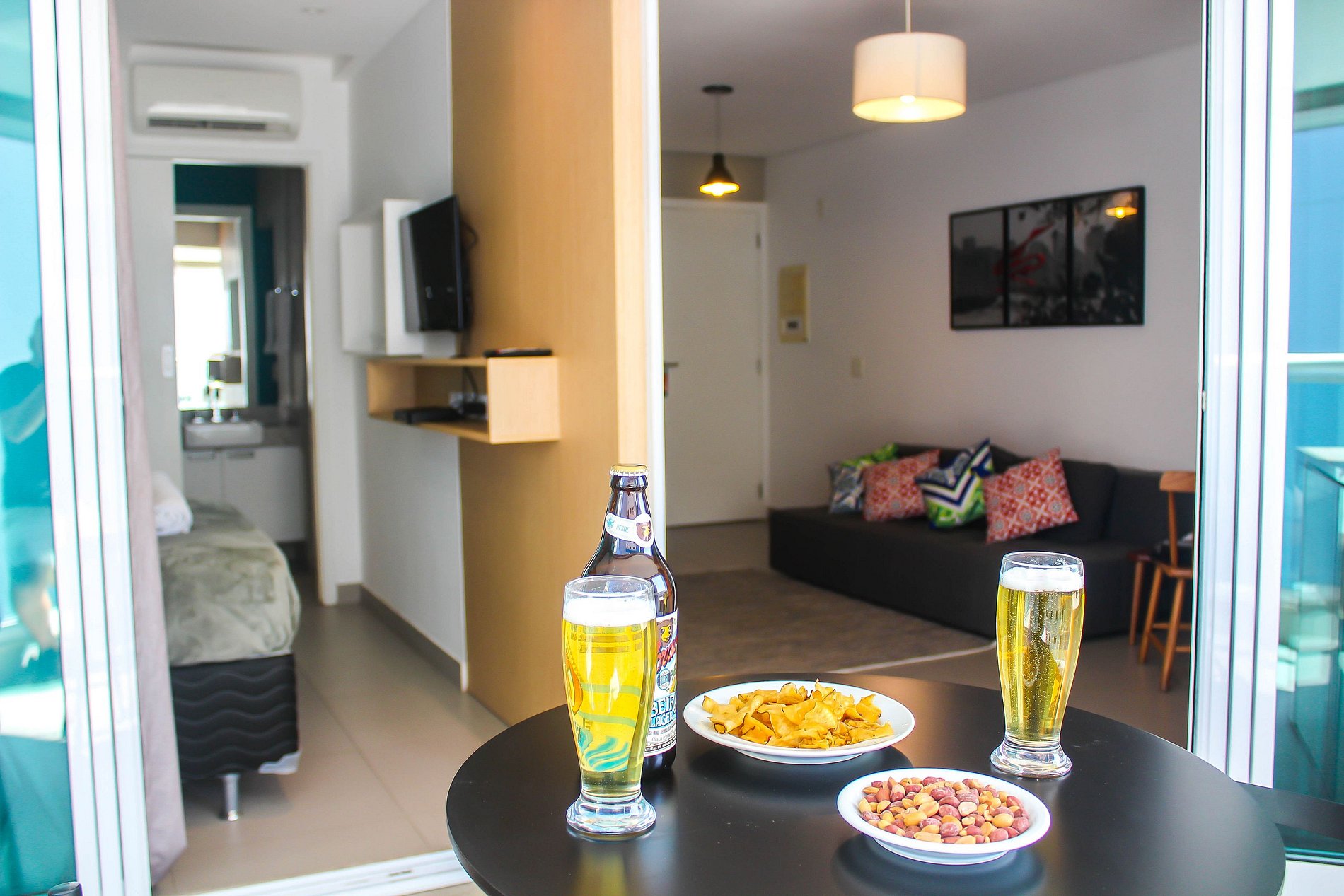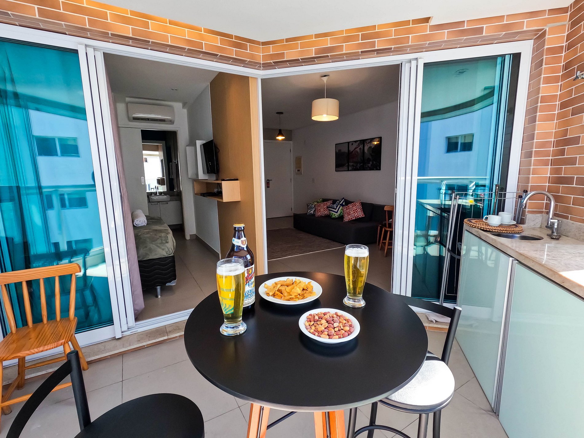 Viaje com o conforto de sua casa de Praia. Na quadra da praia, ideal para passeio e ate mesmo a trabalho. recepção 24hr, auxílio para manutenções do dia a dia, tudo para que seu bem estar! Contamos com uma suite com cama Queen, e sofácama casal na sala, podendo assim, acomodar 4 adultos muito bem! Ar condicionado no quarto e na sala. Internet wifi grátis 250Mb/s com TV Smart e a cabo na sala e no quarto!
