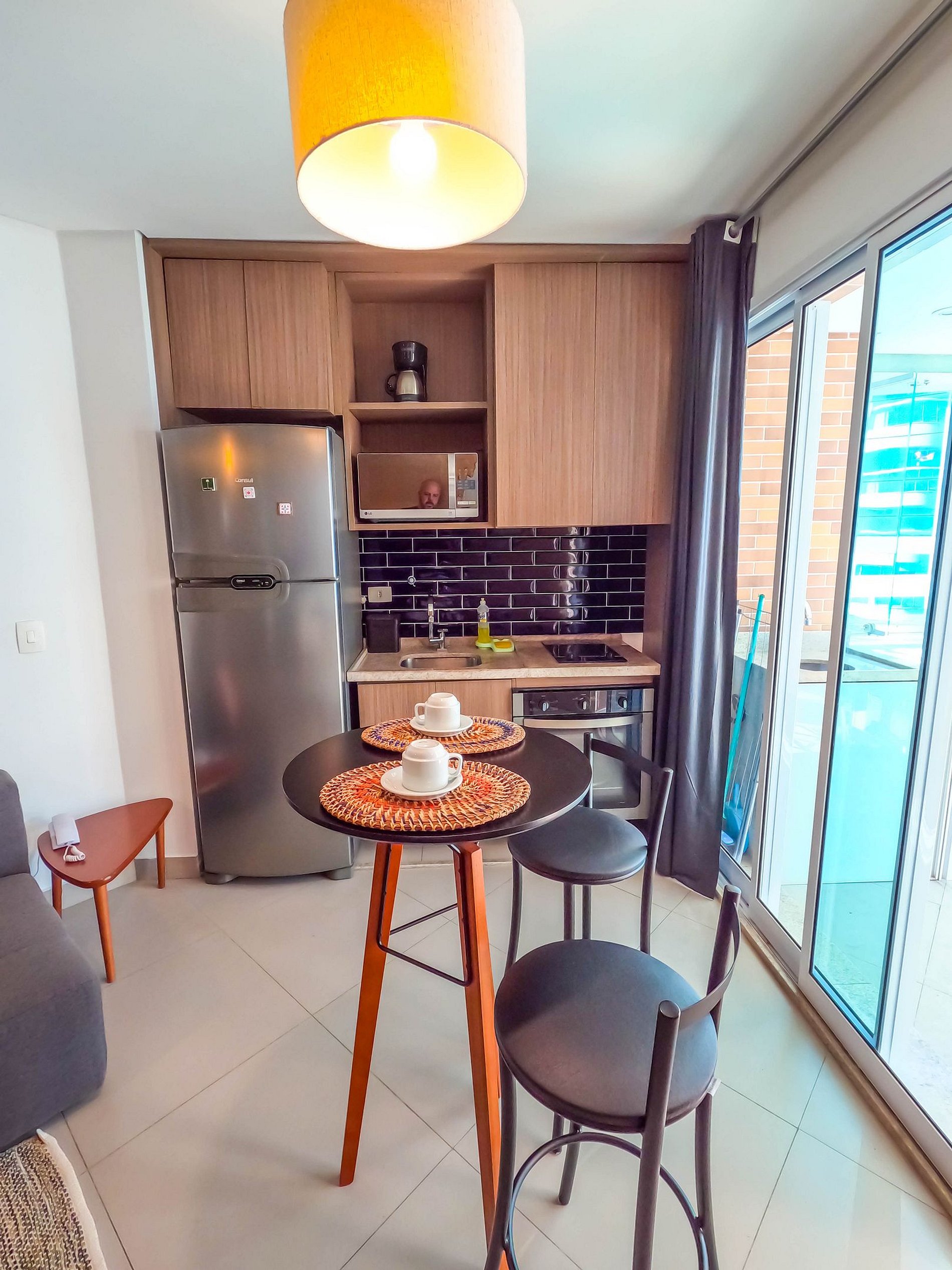 Estacionamento pago no local. Existe a possibilidade de tomar café da manhã no empreendimento, basta fazer o pagamento na recepção. Piscina Climatizada A sacada é fechada em vidro, o que lhe ajudará a manter a temperatura dentro do apto, além de proteger as crianças de brincar no parapeito. Taxa Pet de R$ 120,00 por reserva/período (não é por diária) a ser pago além das diárias.