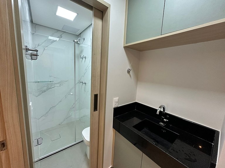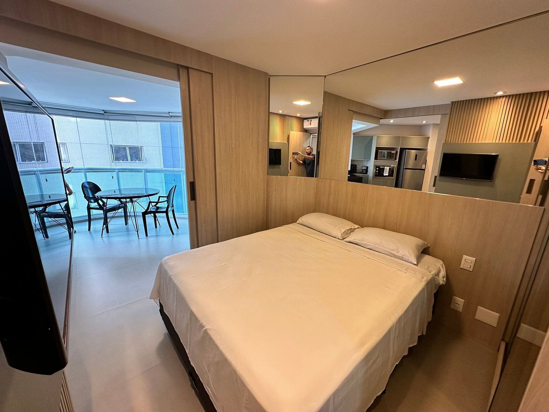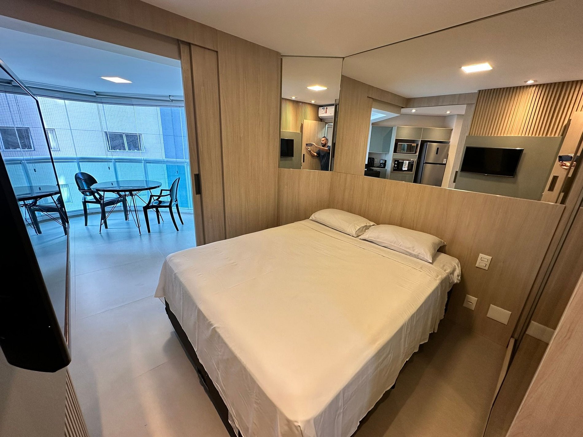 Viaje com o conforto de sua casa de Praia. na quadra da praia, 3 minutos caminhando 200m, ideal para passeio e ate mesmo a trabalho. Recepção 24hr, auxílio para manutenções do dia a dia, tudo para que seu bem estar! Contamos com um quarto com cama Queen. Nasala há sofa cama onde iremos atender ate'4 pessoasmas ainda está sem cortina, inviabilizando o uso do sofá cama. Ar condicionado no quarto, na sala e até na varanda! Internet WiFi 125Mb