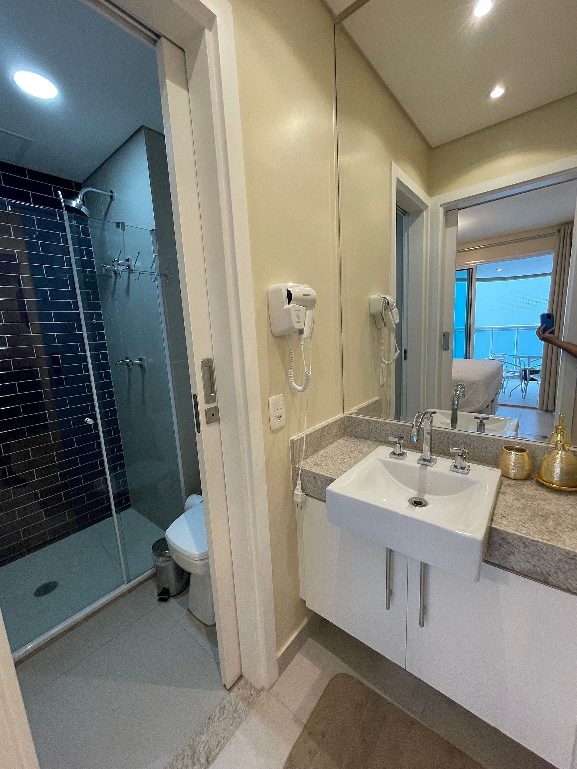 Viaje com o conforto de sua casa de Praia. Na quadra da praia, 3 minutos caminhando, ideal para passeio e até mesmo a trabalho. Recepção 24hr, auxílio para manutenções do dia a dia, tudo para que seu bem estar! Contamos com uma suíte com cama queen, e um cama casal na sala, podendo assim, acomodar até uma 4 adultos ou 2 adultos e 3 crianças pequenas! Ar condicionado no quarto e na sala. Internet Wifi gratuita 500 Mb/s!