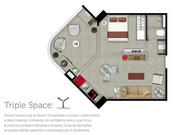 -Varanda com Vista Mar e envidraçamento (fechada em vidro)