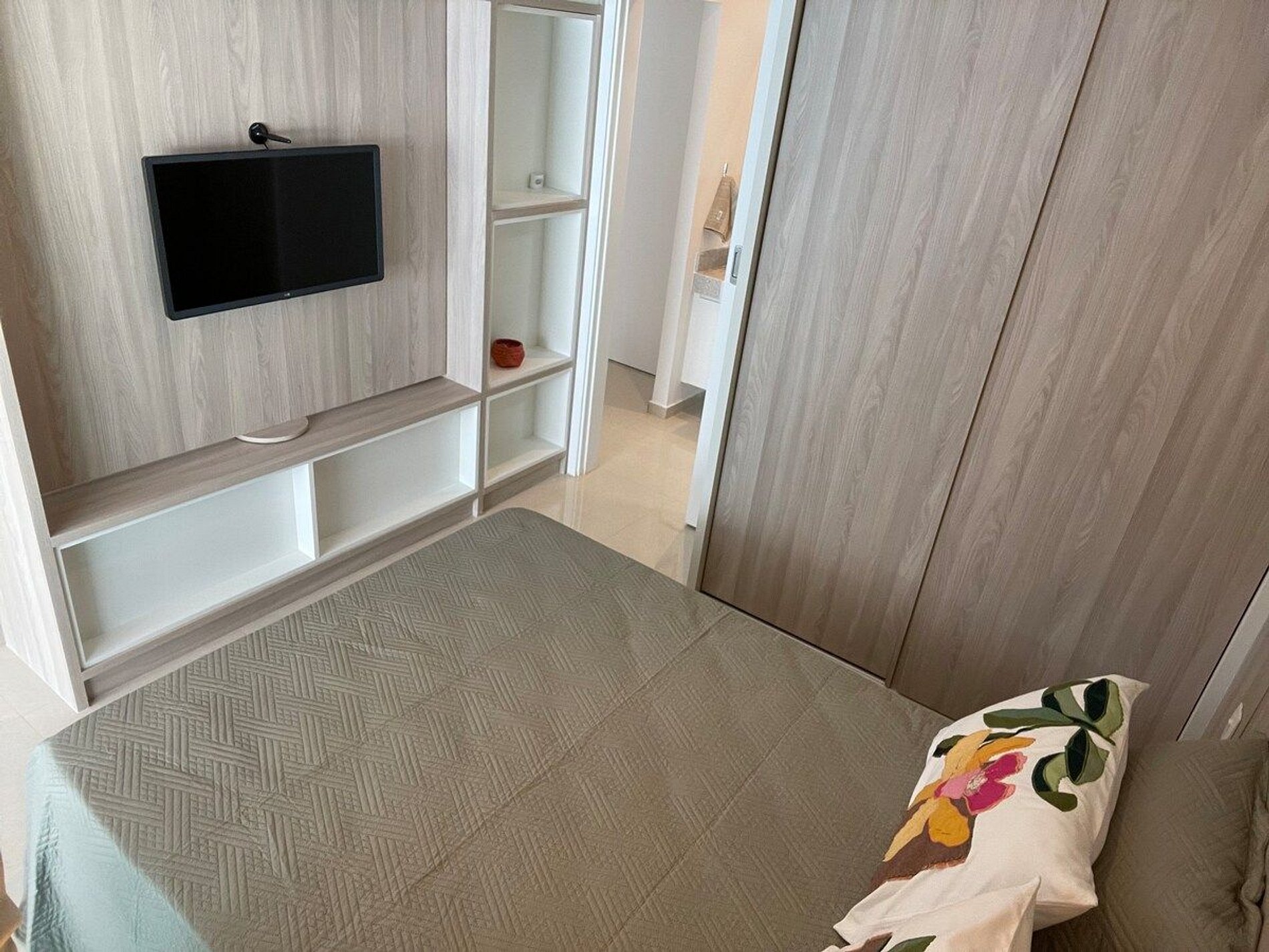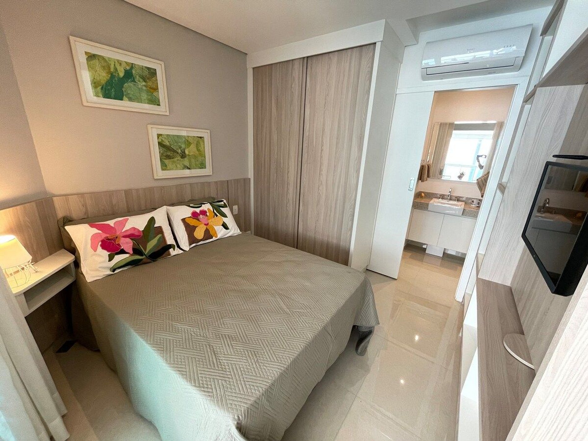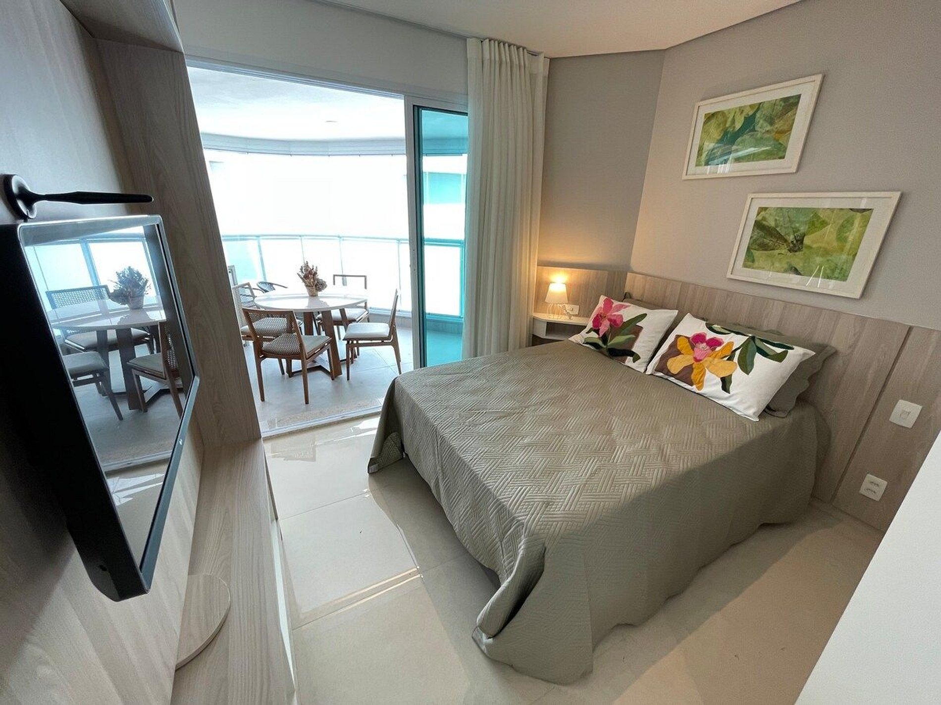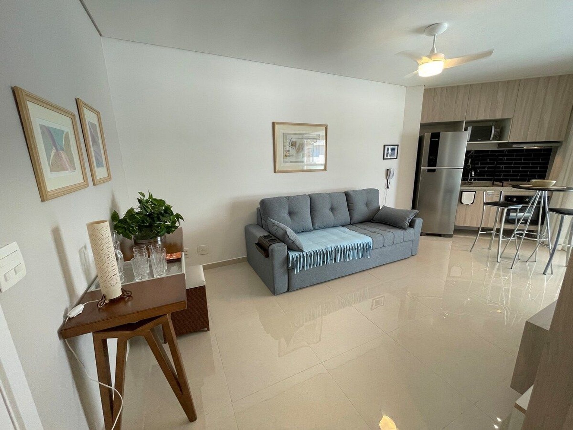 Viaje com o conforto de sua casa de Praia. Na quadra da praia, ideal para passeio e até mesmo a trabalho. recepção 24hr, auxílio para manutenções do dia a dia, tudo para que seu bem estar! Contamos com uma suíte com cama casal, e um belo sofá cama casal na sala, podendo assim, acomodar até uma 4 adultos. Ar condicionado no quarto e na sala. Internet Wifi 350Mb/s!