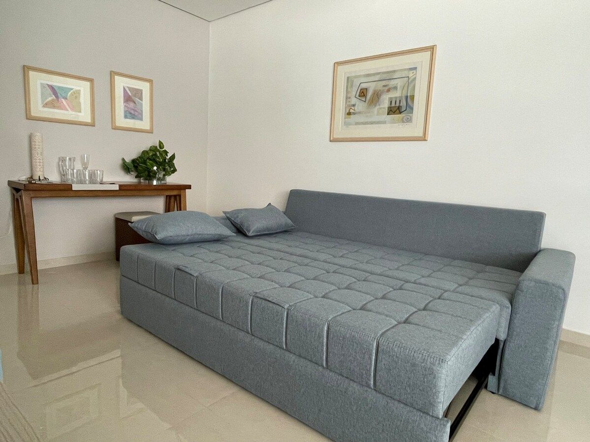 -Cama Casal no quarto e sofá-cama casal, acima dos padrões, na sala