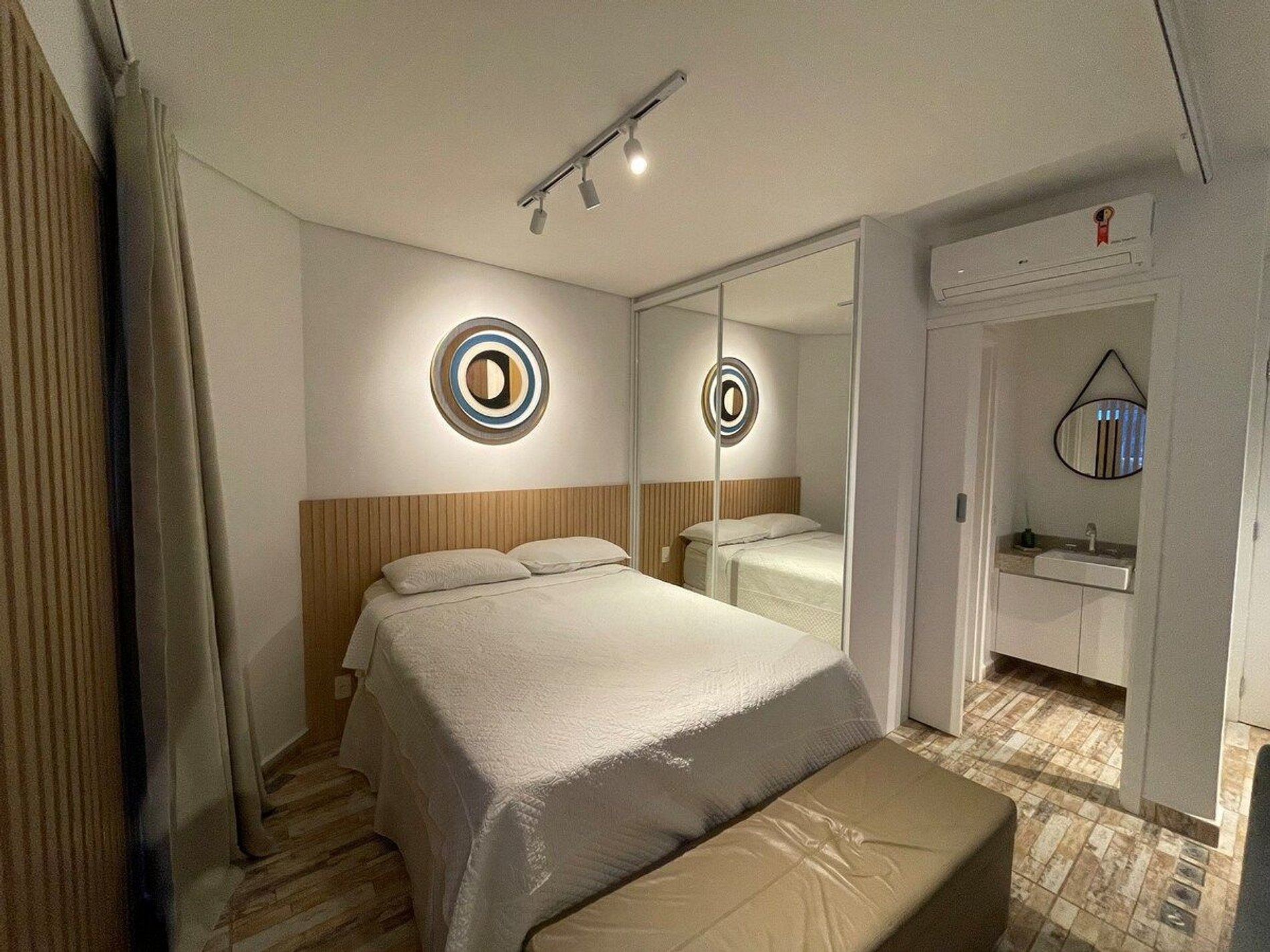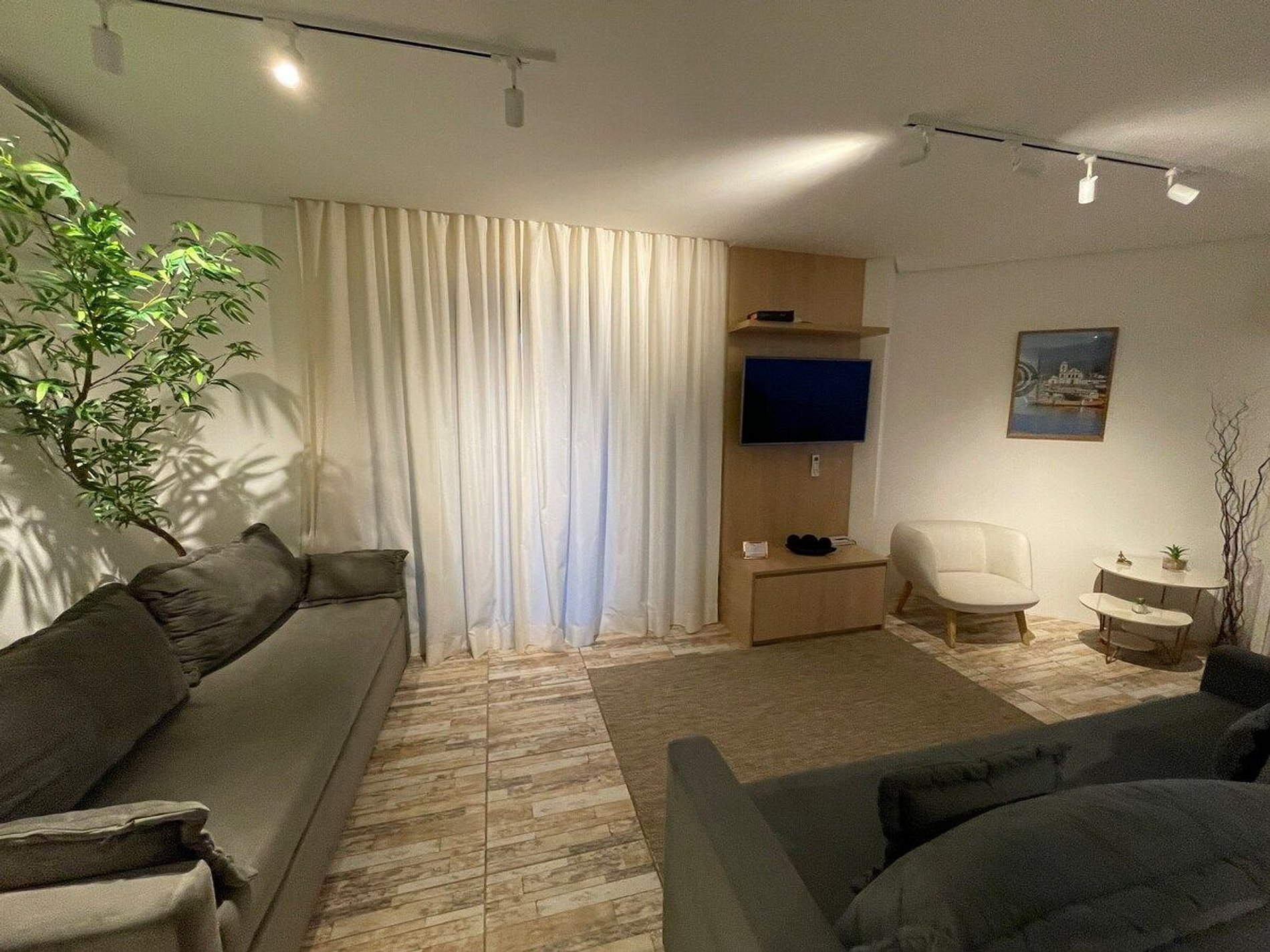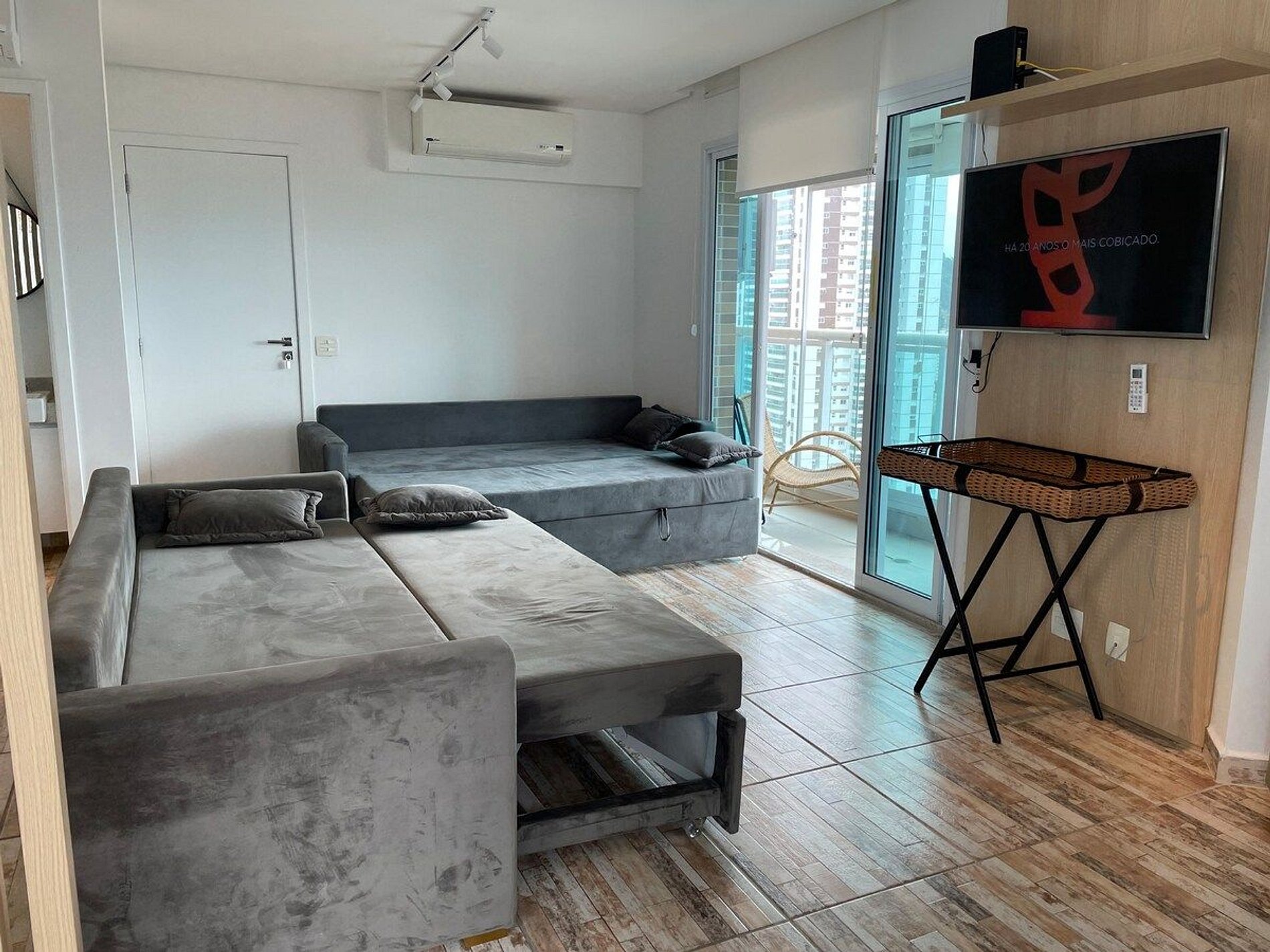 Viaje com o conforto de sua casa de Praia. A uma quadra da praia, ideal para passeio e ate mesmo a trabalho. Estacionamento incluso, recepção 24hr, auxílio p manutenções do dia a dia, tudo para que seu bem estar! Contamos com apto em espaço aberto com cama casal e dois sofás cama casal, assim, acomodando muito bem até 4 adultos! Temos 2 ar condiconados e duas sacadas com fechamento em vidro ! 250Mb/s de internet grátis!