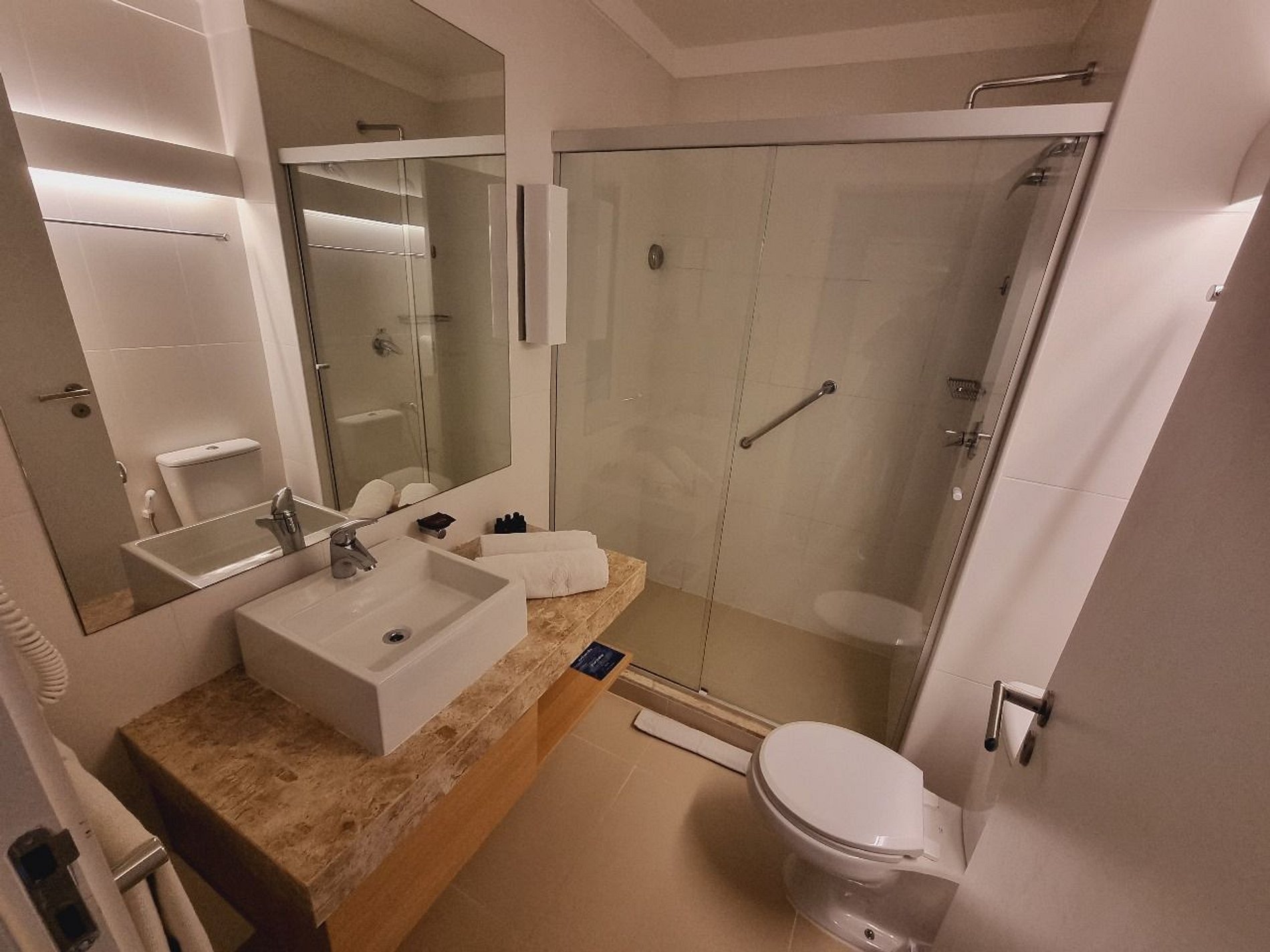 Possui cama KING, que acomodam 2 adultos e 1 crianca. Arrumação de quarto todos os dias, recepção 24hr, tudo para que seu bem estar! Contamos com ar condicionado, cofre e Internet Wifi,grátis além de Mesa de Trabalho, secador de cabelo, TV Smart