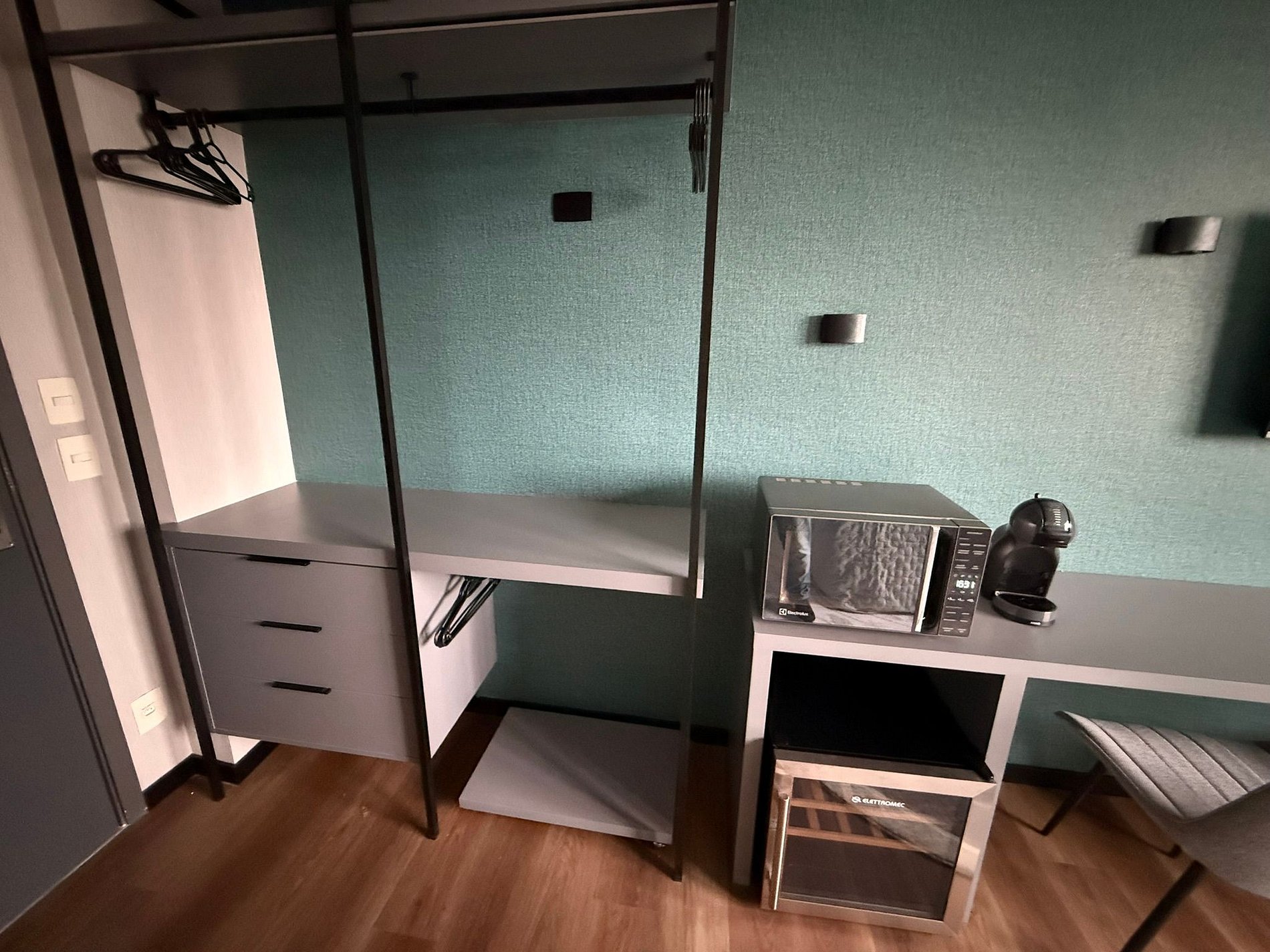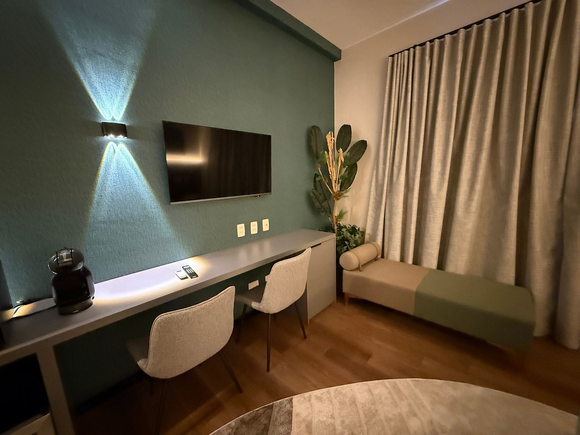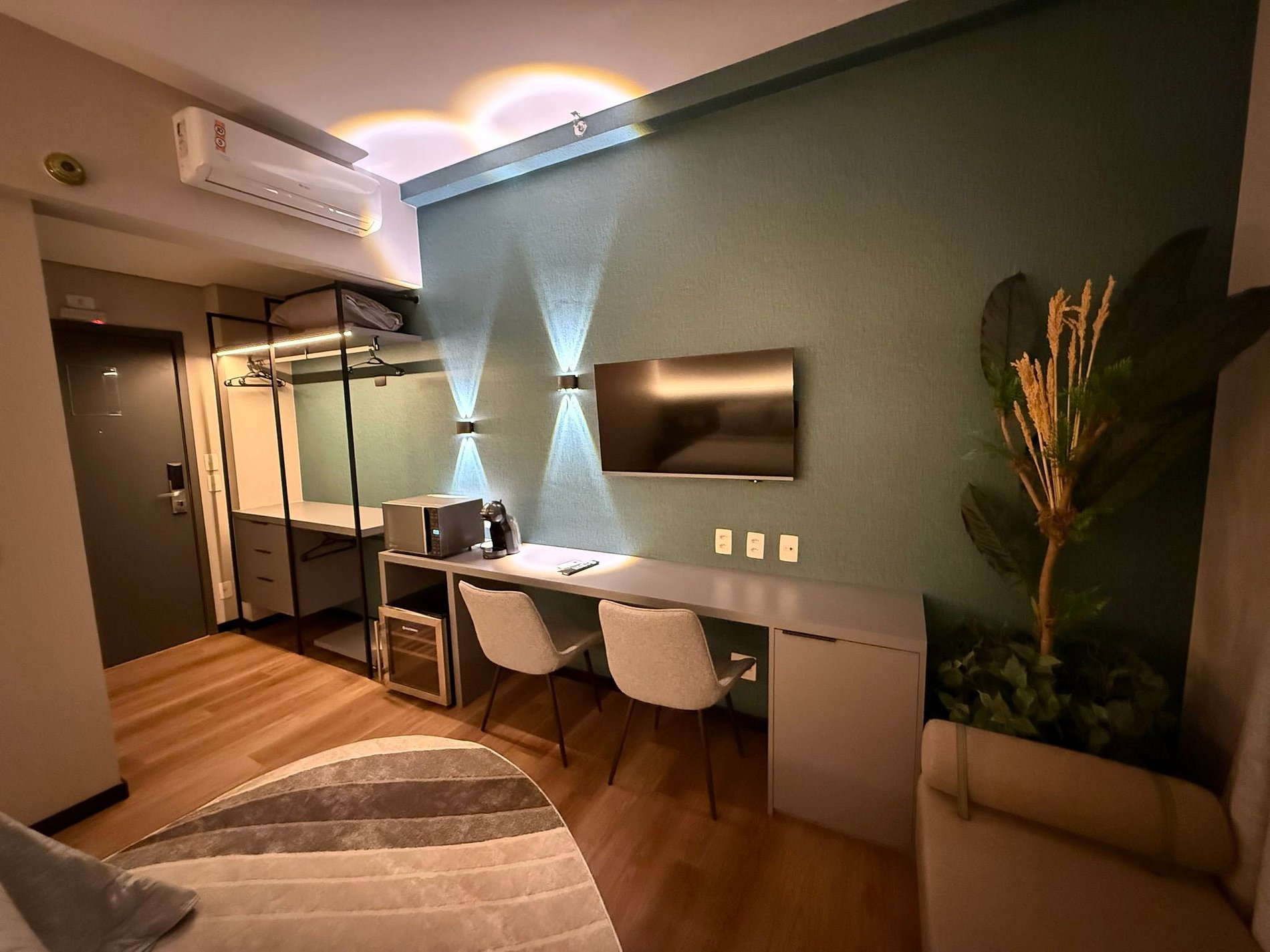 Na quadra da praia, atendemos executivos e lazer. Cama QUEEN com 1 cama de solteiro tipo bicama (embaixo) que acomoda 3 adultos. Arrumação de quarto todos os dias, recepção 24hr. Ar condicionado e Internet Wifi grátis, cofre, área de trabalho, secador de cabelo, TV Smart, adega de vimho que pode usar para refrescar seus alimentos e maquina de café 3 corações. Prédio com Academia e piscina com vista Mar e Sauna das 09hr as 21hr. estacionamento a 30,00 diária. minimercado no piso térreo