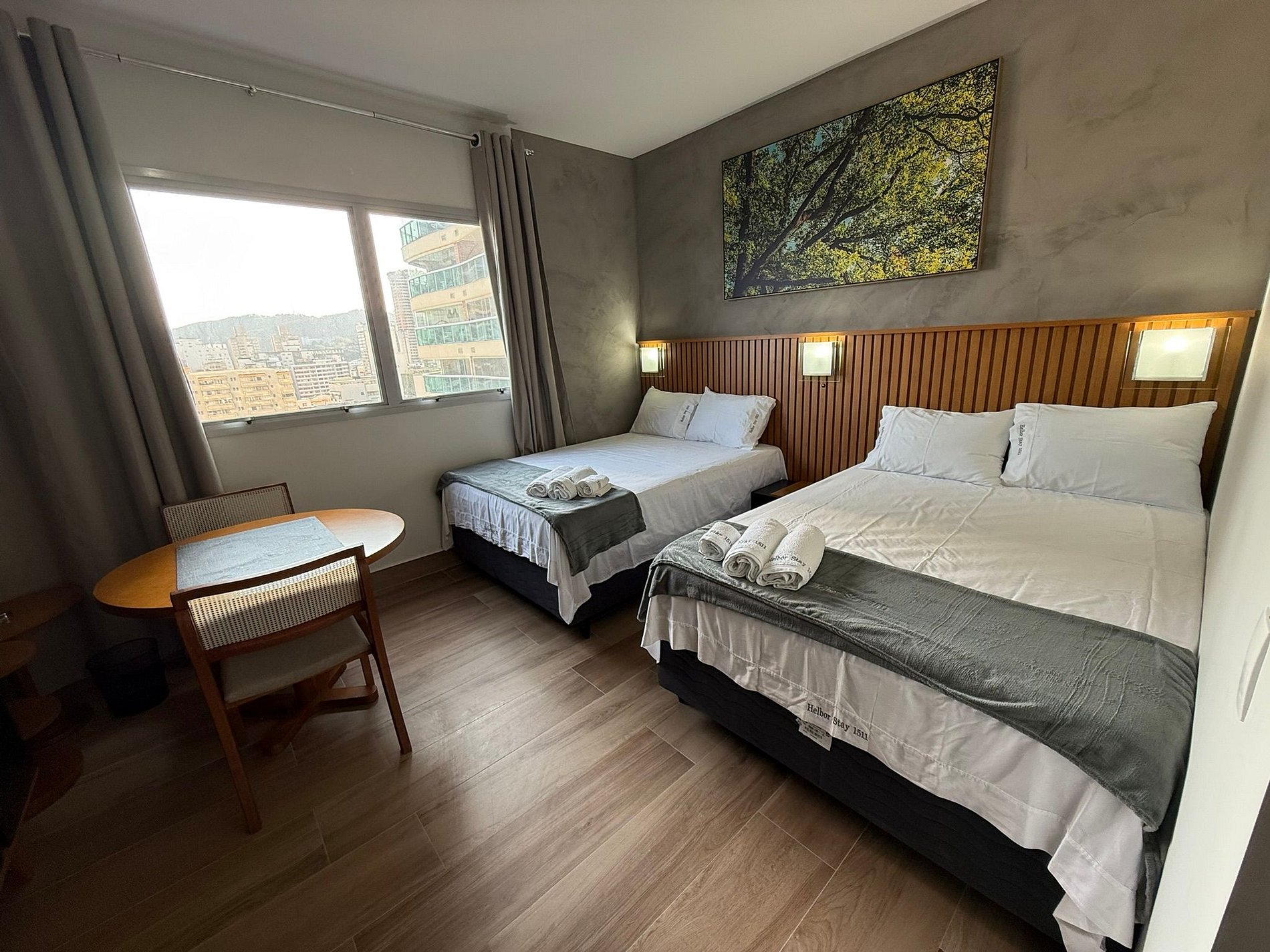 Possui cama 2 Camas de CASAL que acomodam até 4 adultos. Arrumação de quarto todos os dias, recepção 24hr, tudo para que seu bem estar! Contamos com ar condicionado, Internet Wifi, secador de cabelo, TV Smart, mini geladeira e muito mais.