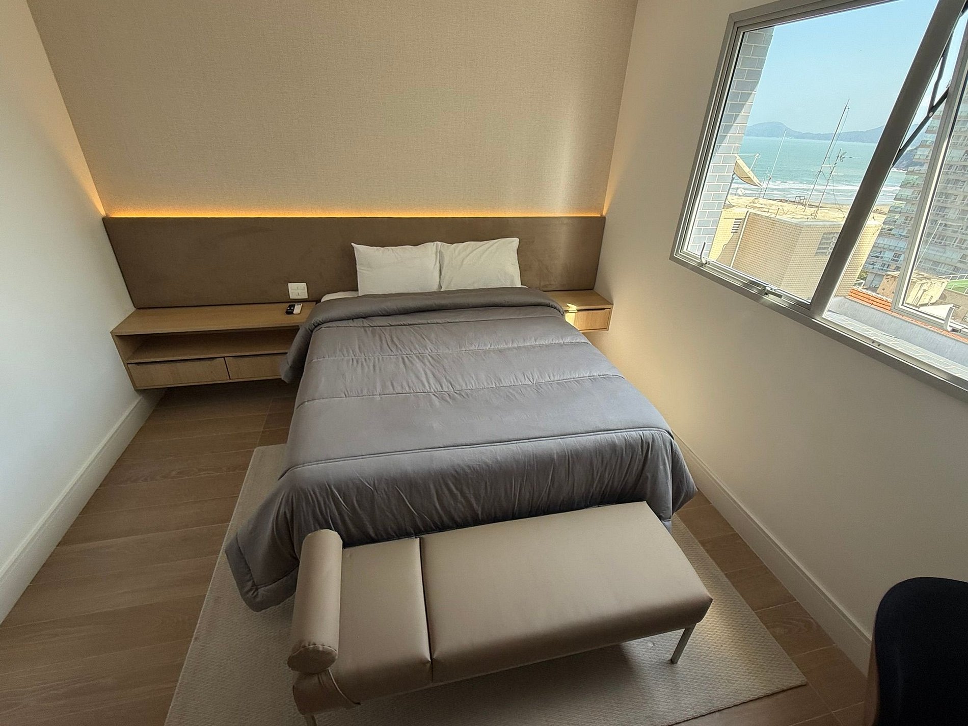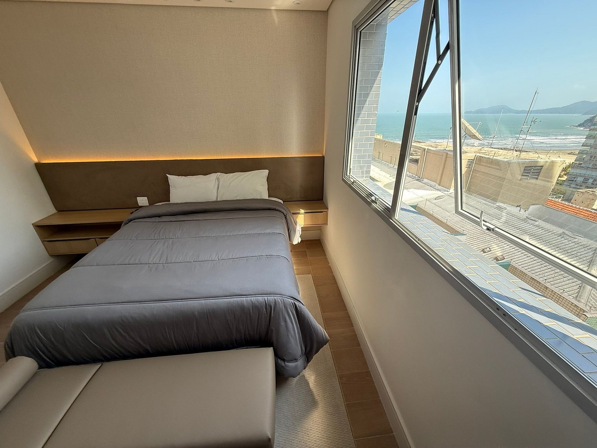 Na quadra da praia, com linda VISTA MAR temos 1 Cama QUEEN que acomodam até 2 adultos e um recamier para apoio. Arrumação de quarto todos os dias, recepção 24hr. Ar condicionado e Internet Wifi grátis, área de trabalho, secador de cabelo, TV Smart 42, cofre,, frigobar, mesa para trabalho e apoio. Prédio com Academia e piscina com vista Mar e Sauna, todos com funcionamento das 09hr as 21hr, Estacionamento a 30,00 diária pagamento no local